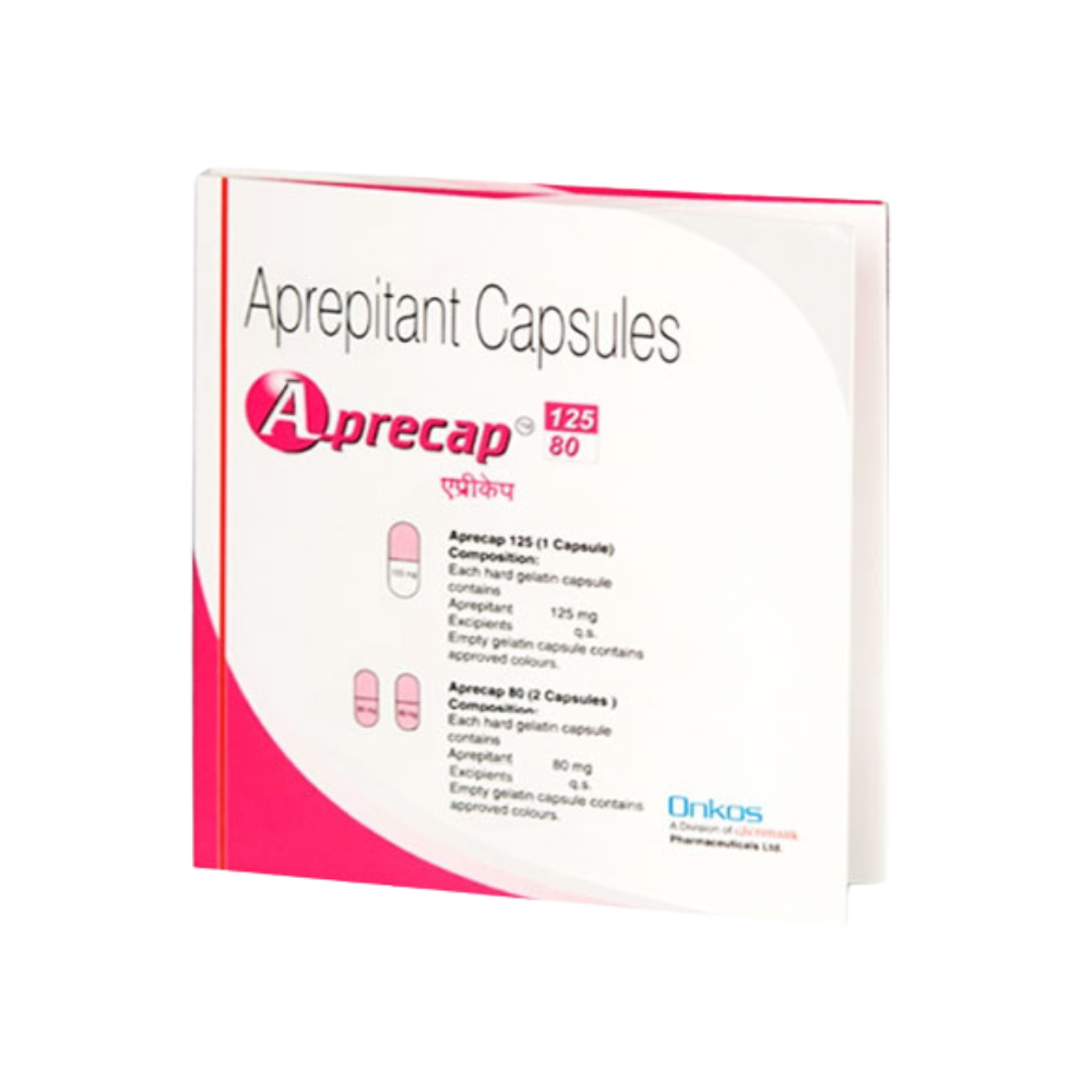 APREPITANT contains Aprepitant, a neurokinin 1 (NK1) receptor antagonist which works by blocking the neurokinin-1 receptor (causes the feeling of sickness) present in the vomiting centre in the brain. Thus, it helps prevent nausea and vomiting.