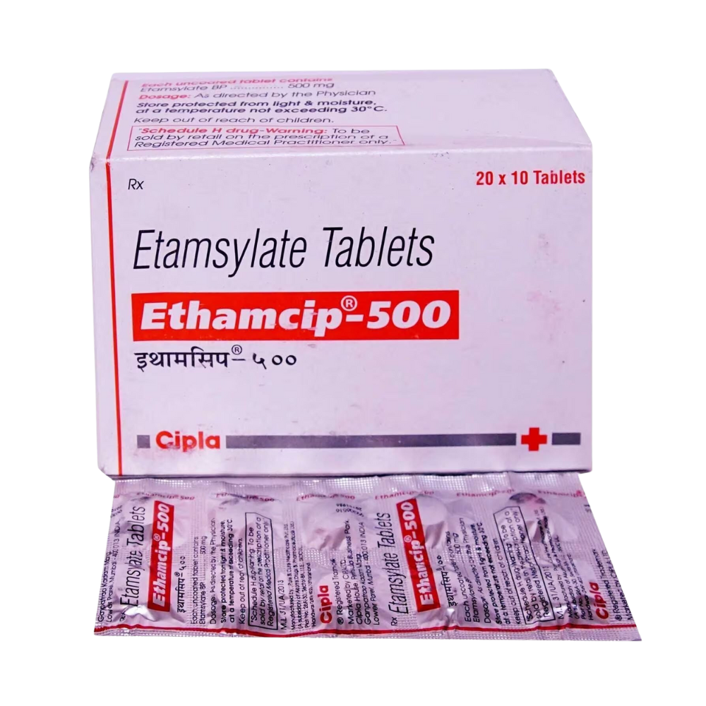 ETAMSYLATE contains Etamsylate, a hemostatic agent that improves platelet adhesion by restoring capillary resistance and improving platelet adhesion. On the other hand, ETAMSYLATE also inhibits the biosynthesis and action of the prostaglandin. These effects help to decrease abnormal bleeding. Thus it treats, controls, and improves various disease conditions and symptoms.