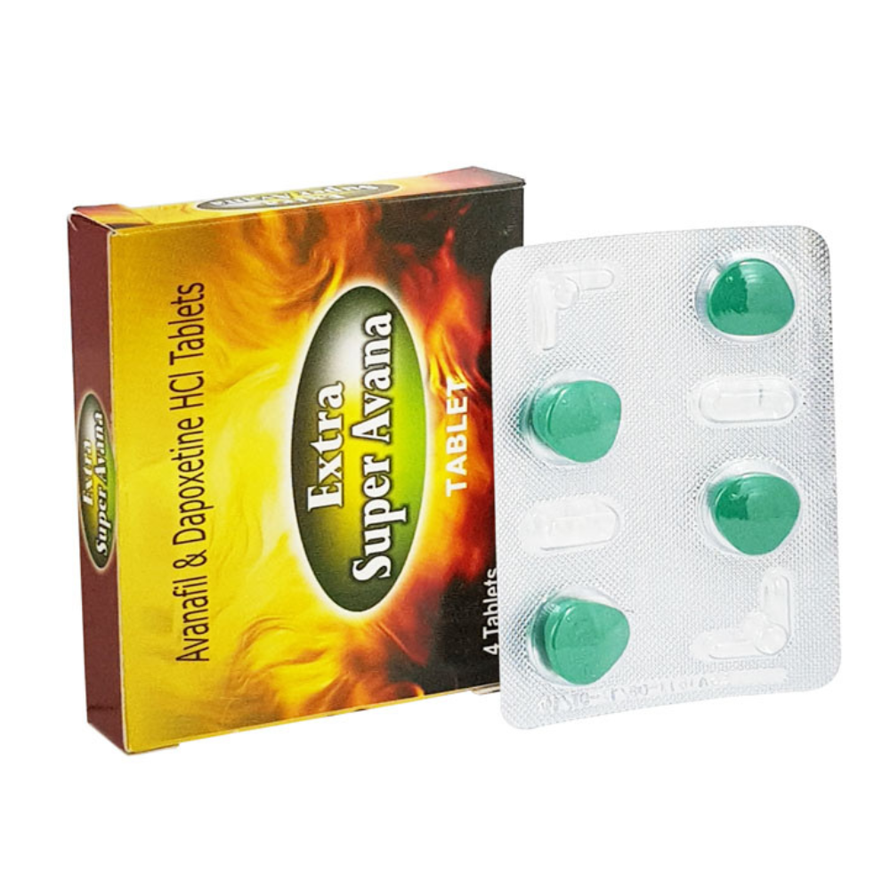 Extra Super Avana Tablets contain Avanafil & Depoxetine an impotent agent used to treat erectile dysfunction (impotence) in adult men. It relaxes the blood vessels in the penis and increases the blood flow into the penis. This helps it stay hard and erect when the person is sexually excited. Thereby, AVANAFIL treats erectile dysfunction.