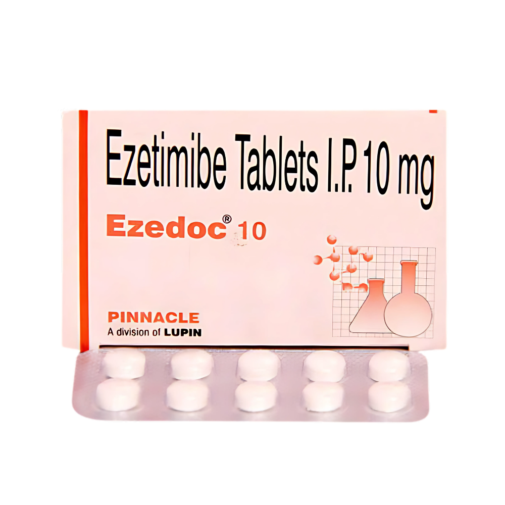 EZETIMIBE contains a cholesterol-lowering medication primarily used to treat high cholesterol. Cholesterol is a waxy substance produced by the liver to protect nerves, make tissue, and various hormones. EZETIMIBE contains Ezetimibe, which is a cholesterol absorption inhibitor. It effectively lowers the amount of cholesterol in the blood by reducing cholesterol absorption in the intestine and lowering the level of bad cholesterol in the blood. Hence, reducing the chances of heart disease and making them healthier.
