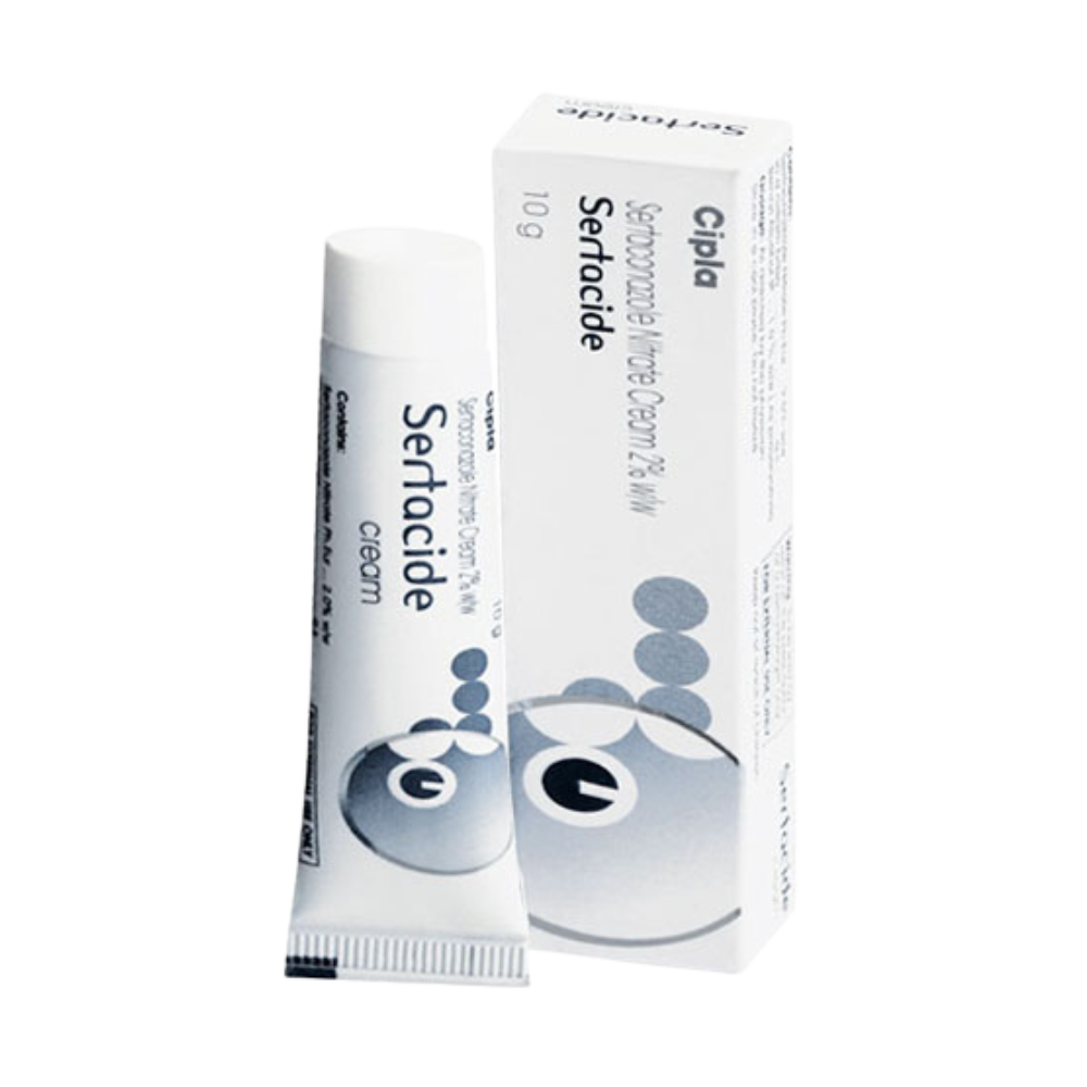 SERTACONAZOLE NITRATE is a topical medicine used to treat interdigital tinea pedis/Athlete’s foot. SERTACONAZOLE NITRATE helps prevent fungal cell division and proliferation, arresting the growth of the pathogen. SERTACONAZOLE NITRATE, therefore, finds application in treating surface-level itches, rash, redness, burning and superficial fungal infections.